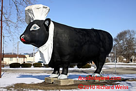 The Western edge of Logansport is where you will find Mr. Happy Burger. It appeared to be closed on this Sunday afternoon. The giant bull with the chef hat was at the side of the place. See more photos of Mr. Happy Burger here. 10-10