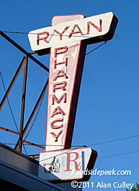 This drugstore found in Bloomington, IL is called Ryan Pharmacy. The place comes complete with the eye-catching sign hanging off the roof. 06-11