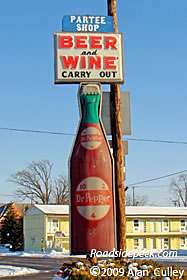 Here's the Partee Shop and its roadside marquee in Van Wert, OH. This has to be fairly vintage with the old style Dr. Pepper bottle sign making up the largest portion of the sign. 02-09