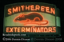 Here's a nice neon shot of the Smithereen Exterminators sign. Check out the image of the neon mouse at this Chicago, IL location. 06-06