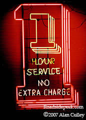 This neon sign featuring 1 Hour Service at no extra charge no longer lights up the window in Marion, IN. 06-07