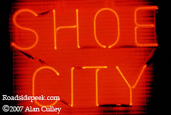 Red is the neon theme at Shoe City in Marion. This sign, like many of the others in this Indiana town has been removed. 06-07