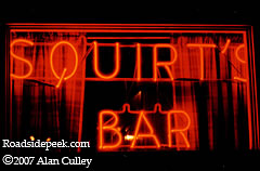 Check out the red neon lettering at Squirt's Bar in Marion. The way the neon lights up the window and curtains, makes the scene look like its from a red light district. 06-07