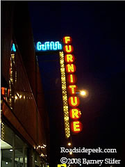 The Griffith Furniture store shows off its blade neon sign glowing at night in Griffith, IN. 10-08