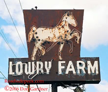 Here's a faded out roadside sign for the Lowry Farm in Pittsfield, IL. It appears that the horse on the sign used to be neon lit and animated to boot. Not sure if the sign ever lights up these days or if there are plans to restore the sign. 04-06