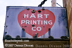 The old Hart Printing sign in St Louis, MO is now gone and replaced by the Moto Museum. The photo of the Hart Printing sign was taken in 2005. 06-07