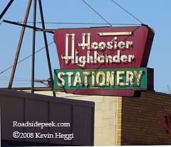 The Hoosier Highlander Stationery store also features a classic old roadside sign advertising its business. 10-08