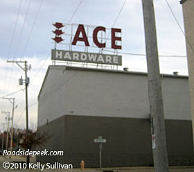 This huge rooftop sign is for the Ace Hardware in Janesville. This place is right across the street from the Rivers Edge Bowl. 11-10