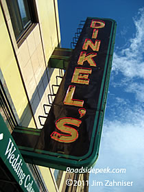 The eye catching blade sign for Dinkel's Bakery still catches attention off Lincoln Avenue in Chicago. The bakery first opened its doors in 1922 and continues to serve the community with fresh baked goods under its third generation of ownership. For more information on this classic bakery, see the Dinkel's website. 07-11