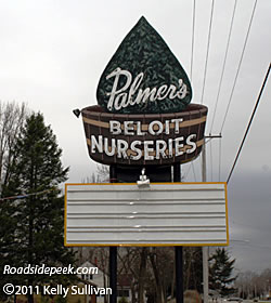 The Palmer's Beloit Nurseries is a sign that fits the theme of a nursery with its gardening looking marquee. 07-11