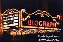 Here's the neon marquee for the Biograph Theatre in Chicago, IL. The Biograph is the place where John Dillinger went down in a hail of FBI bullets in the 30's. The Biograph was built in 1914 and was designated a Chicago Landmark in 2001. 11-07