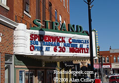 Here are a couple of shots of the Strand Theatre marquee. This Angola, IN favorite still opens to the public on a nightly basis. 02-08