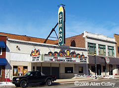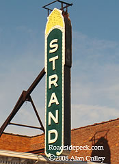 Check out the Strand Theatre, located in Sturgis, MI. The Strand still features an intact blade sign, that may or may not be neon these days. Check out the front marquee with a design popular with the theatres of the same era. The Strand is now a four screen multiplex still showing first run movies. See the Strand Theatre official website for more information. 02-08