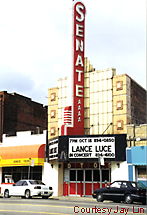 theatre alongside the old US 40 sports a marquee reminiscent of an amusement