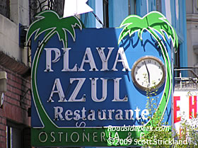 Here's the Playa Azul marquee from Seattle. The sign itself comes complete with dual palm trees. Interestingly enough, there is a clock on the large sign that for some reason just doesn't seem to fit. 08-09
