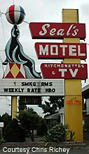 UPDATE 07/07 : The Seal's Motel neon sign was removed and replaced by backlit plastic. Many thanks to Mike Fuller for update. 07-07