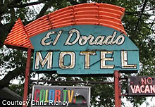 The El Dorado Motel in Seattle, WA features a vintage marquee