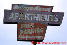 for a motor court. The Cottage Grove Apartments marquee is now faded and worn.