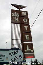 This towering sign stands in the lot of the Sis Q Motel in Medford, OR. The place is still open, though it gets some dicey reviews.