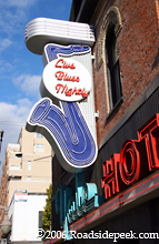 Here's the Yale Hotel and its familiar saxophone marquee. The Yale opened in the 1884 and is now a venue promoting up and coming blues musicians. See more info at the Yale Hotel website. 03-06