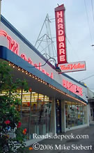 Check out the neon lettering and marquee for this hardware store in Portland, OR. Moreland Hardware still features eye catching neon as its sits alongside the road. 06-06