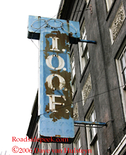 This is an old faded out IOOF sign, found in Cottage Grove, OR. 03-06