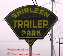 The Shirleen Trailer Park stands tall with its roadside sign found at the entrance. These old trailer parks are disappearing at an alarming rate these days. 03-06
