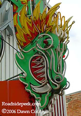 Check out this neon dragon at the Star Noodle Parlor restaurant, located in Ogden, UT. This dragon must be quite a sight if the neon works at night. 10-06