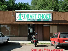 This sign advertises the 1st Draft Choice tavern in this rather nondescript