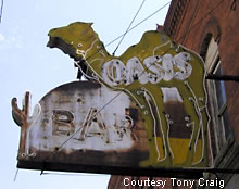 Here's a unique sign for The Dime Horse Shoe Bar, located