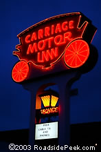 The Golden Hills Motel features a nice neon display on this rather scenic sign. Check out the painted images of the hills on the background of this sign.