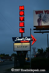 The Sands Motel marquee features a yellow lantern on the top. 07-07