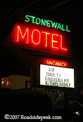 The vacancy sign is lit up at the Stonewall Motel. 07-07