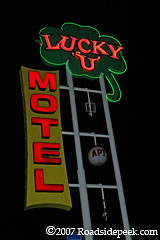 What's not to like about a motel called the Lucky U Motel? The marquee even shows off a neon four leaf clover. From the looks of things, the motel has at least partially been converted to apartments. 07-07
