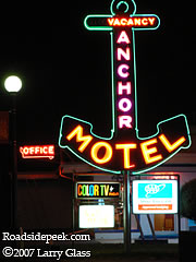 The Anchor Motel in Walsenburg, CO features a huge neon outline of an anchor as a sign. 11-07