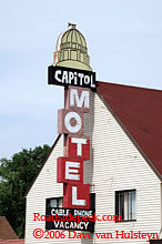 Salt Lake City, UT is home to the appropriately names Capitol Motel. Fancy the little capitol image atop the sign as well as the staggered letters in a style that was quite common back in the day. 09-06