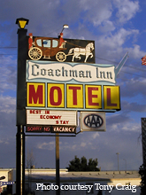 The Coachman Inn Motel in Green River, WY features a rather detailed picture on its sign.