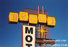 (Far left) The amazing looking marquee for the Mecca Motel, complete with unique lettering and prominent starburst