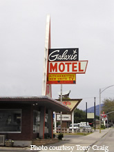 This space age looking motel is called the Galaxie Motel. You would half
