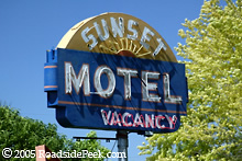 This old roadside sign is the marquee for the Sunset Motel in Pueblo, CO. This bears a striking resemblance to another Sunset Motel