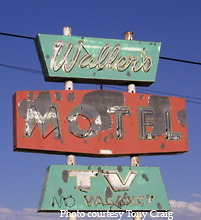This old faded sign by the road appears to be all that's left of the Waller's Motel. Not sure if the motel itself is still standing.