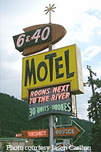 UPDATE 09/17 : The cool motel sign for the 6&40 Motel in Idaho Springs is now gone. The multi shaped sign has been replaced by plastic. 09-17