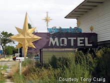 On the far right, the main motel marquee shows off its huge arrow. Unfortunately,