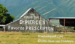 Once upon a time, advertising on old barn buildings (like Meramec Caverns in Missouri) was popular and prevalent. Here's one example out in Logan, UT for Dr. Pierce's Favorite Prescription. 10-06