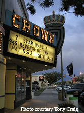 The Dogie Theatre and this marquee is located in New Castle, WY. The "dogie" winks at night. It lights one eye, lights the other eye, then both. Check out this shot of the "dogie" lit up in neon. Information about the theatre can be found at the Dogie Theatre website. 12-07