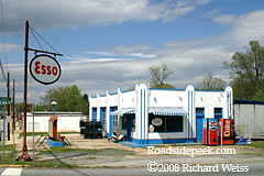 (Far left) A shot of the art deco structure for the Esso Gas in Denton, NC