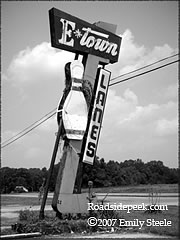 9Here's an old marquee for the E Town Lanes, located off this roadside in Kentucky. 10-07