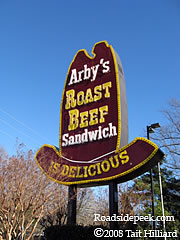 This is the old style Arby's Roast Beef sign located on Hillsborough Street in Raleigh NC. This is one of the main drags through Raleigh and is located close to NC State University. 08-08