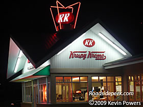 This Krispy Kreme near downtown Atlanta, GA is an original model. The rotating Krispy Kreme sign encased in neon still turns on the roof today. 02-09