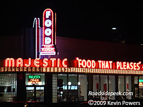 The Majestic Diner is a landmark of Atlanta that has been around since 1929. The Majestic shows off its familiar phrase "food that pleases" in neon around the outside of the diner. 02-09